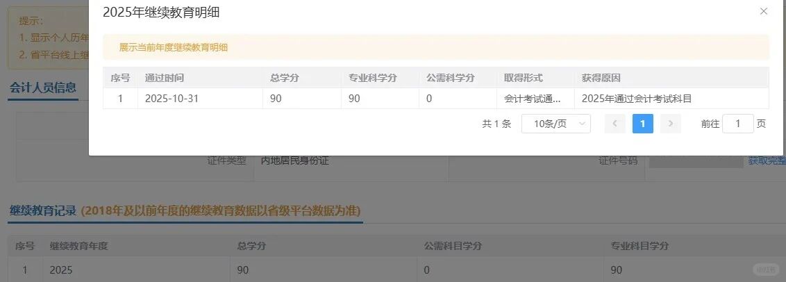 第二步:查看2025年继续教育记录。