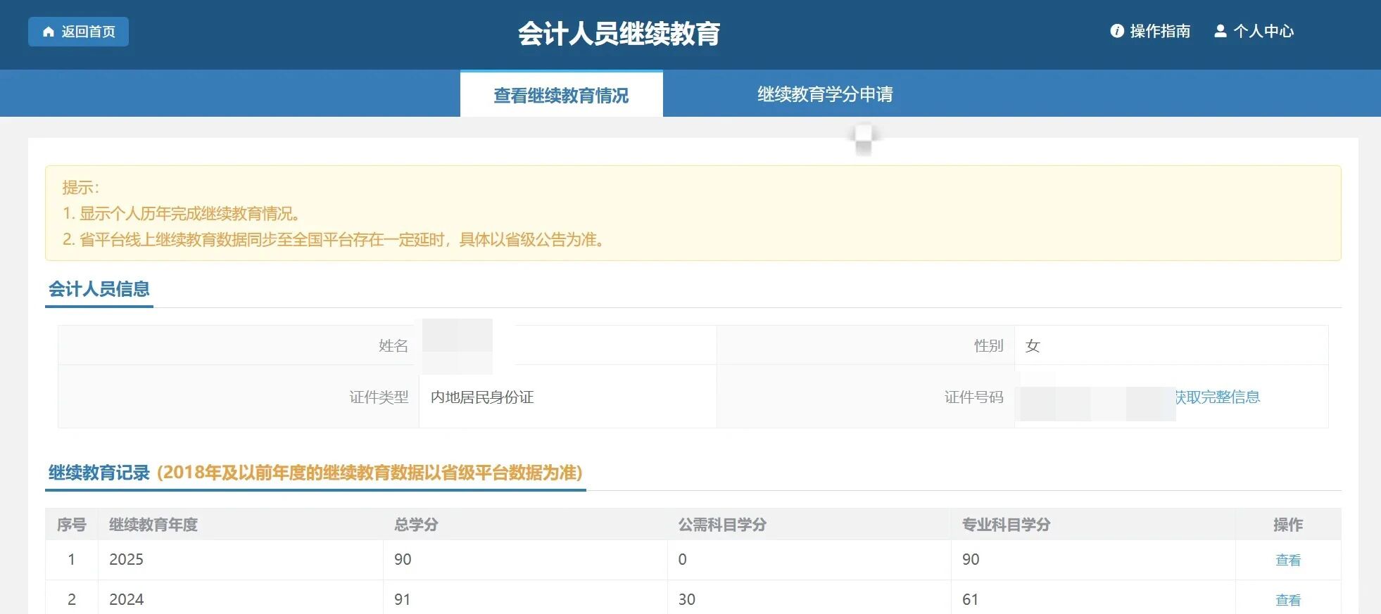 2025年继续教育取得的总学分不少于90分,其中专业课≥60分,公需课≥30分。取得的学分在全国范围内当年度有效,不得结转以后年度。