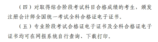 对取得综合阶段考试科目合格成绩的考生,颁发注册会计师全国统一考试全科合格证电子证书。