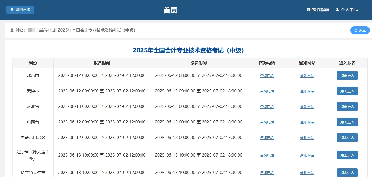 2.2026年6月12日至7月2日,全国会计人员统一服务管理平台开通中级会计资格考试报名。在上述时间内,各省级考试管理机构自行确定本地区的报名开始时间。考试报名统一在7月2日12:00截止,缴费统一在7月2日18:00截止。报考人员应于7月1日12:00前完成信息采集。