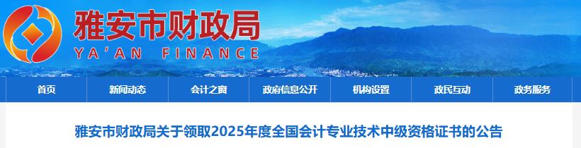 雅安市财政局关于领取2025年度全国会计专业技术中级资格证书的公告