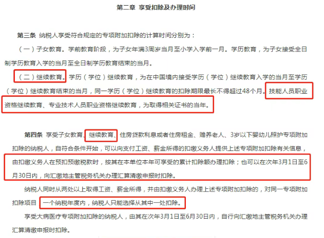 同年取得多个职业资格证书:仅可选择其中一个扣除