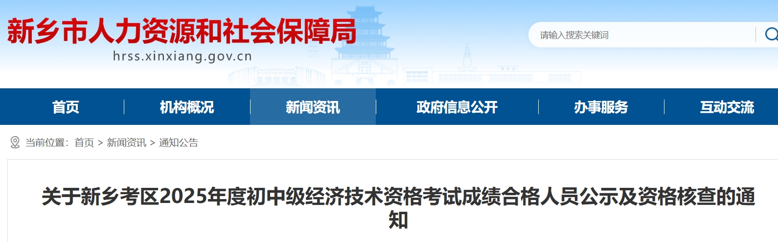 河南新乡2025年中级经济师考试合格名单及考后审核须知