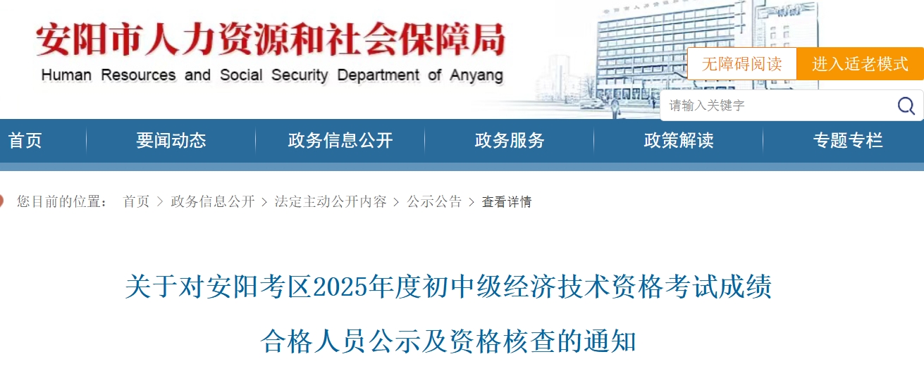 根据《专业技术人员职业资格考试考务工作规程》和《专业技术人员职业资格考试报名证明事项告知承诺制工作规程》规定和要求,现对安阳考区2025年度初中级经济技术资格考试成绩合格人员予以公示和考后资格核查。