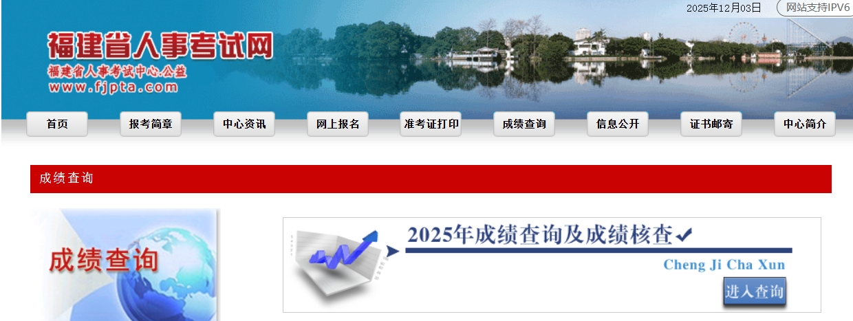 福建省人事考试中心2025年12月2日至2025年12月16日受理福建考区成绩核查申请(登陆福建省人事考试网-成绩查询-2025年成绩核查栏目在线提交)。