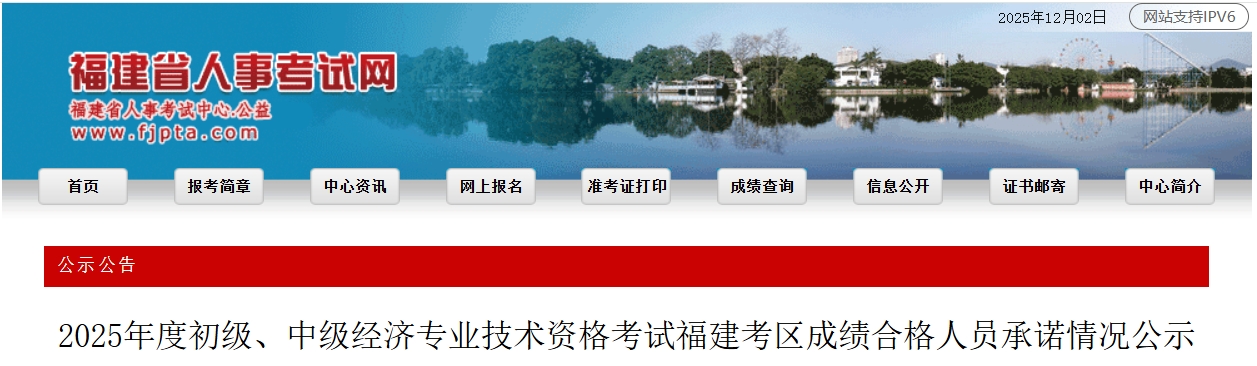 根据《国务院办公厅关于全面推行证明事项和涉企经营许可事项告知承诺制的指导意见》(国办发〔2020〕42号)、《人力资源社会保障部办公厅关于印发《部本级全面推行证明事项告知承诺制实施方案》的通知》(人社厅发〔2020〕110号)的规定和要求,现将2025年度初级、中级经济专业技术资格考试福建考区成绩合格人员承诺情况予以公示 (名单附后)。