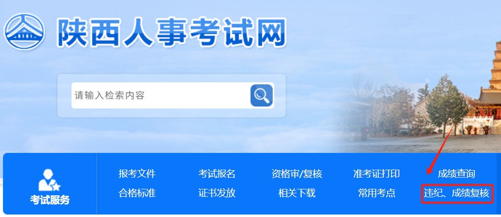 陕西:进入-陕西人事考试网-违纪、成绩复核-就会显示入口处(http://www.sxrsks.cn/website/sfh_show.aspx?id=8179),如下图: