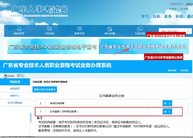 广东:登录广东省人力资源和社会保障厅官网——"人事考试"专栏(https://rsks.gd.gov.cn/),选择"证书邮寄"模块,填写邮寄信息。