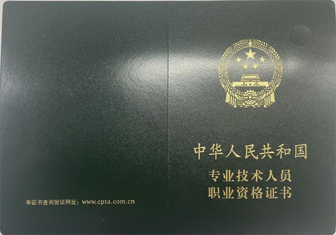 •证书外观:深蓝色封面,印有"中华人民共和国专业技术人员职业资格证书"金色字样