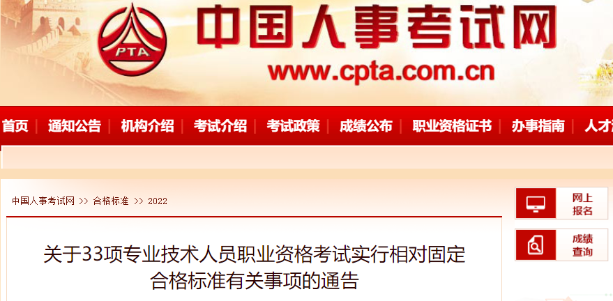 政策依据:人社部办公厅《关于33项专业技术人员职业资格考试实行相对固定合格标准有关事项的通告》
