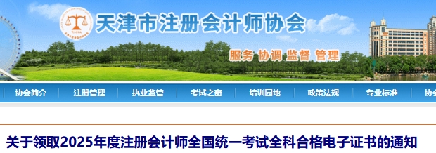 12月16日,天津市注册会计师协会发布了《关于领取2025年度注册会计师全国统一考试全科合格电子证书的通知》,2025年天津cpa全科合格证可以在中国注册会计师协会自行下载,以前年度注册会计师全国统一考试综合阶段考试通过的考生如未领取,可继续领取纸质全科合格证。