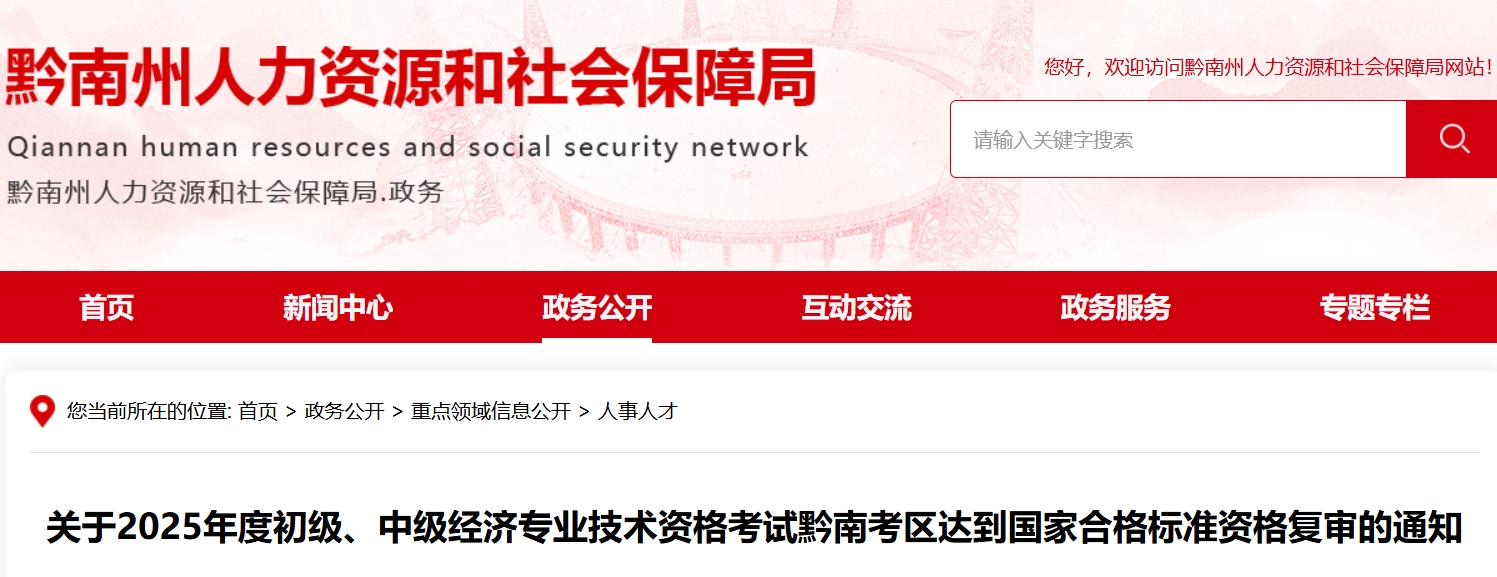 2025年贵州黔南州中级经济师考试成绩已公布,达到国家合格标准(各科≥84分)的考生需参加考后资格复审。根据黔南州人力资源和社会保障局通知,黔南州2025年中级经济师资格复审截止时间为2025年12月22日(工作日18:00前),逾期未审核者将视为自动放弃资格。