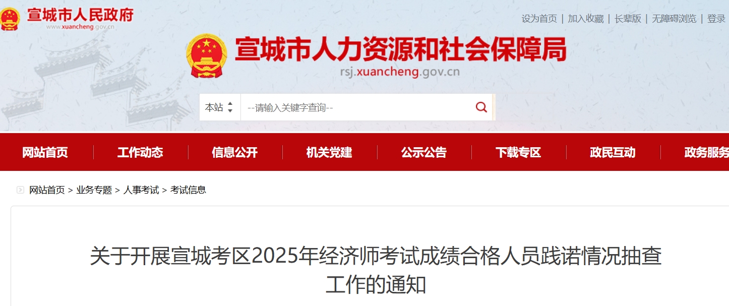 根据专业技术人员职业资格考试报名证明事项告知承诺制有关要求,拟于近期开展宣城考区2025年度经济考试成绩合格人员践诺情况抽查工作,现将有关情况通知如下。