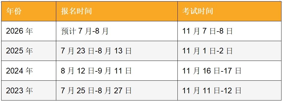 2024年因考试时间较晚(11月16/17日),报名整体后移至8月12日——9月11日,但部分考区开放时长依然压缩在10天以内。