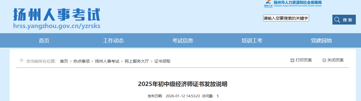 可登录中国人事考试网(www.cpta.com.cn),点击"资格证书"栏目查看"证书办理进度",及时掌握印制与分发状态。也可关注扬州市人力资源和社会保障局官网公告。