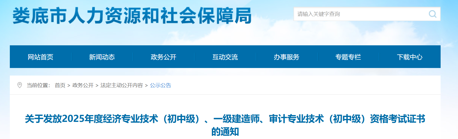 关于发放2025年度经济专业技术(初中级)、一级建造师、审计专业技术(初中级)资格考试证书的通知