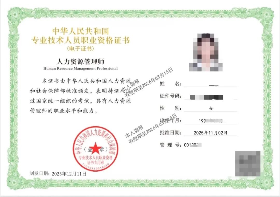 报考中级人力资源管理专业的考生,证书名称直接显示为“人力资源管理师”,不出现“经济师”或“中级”字样,但属于国家认可的中级职称资格。