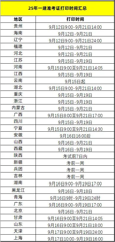 自9月12日起,各地25年一建准考证打印入口陆续开通。还没打印准考证的同学,一定要关注下自己所在地区的打印时间,以免错过噢!