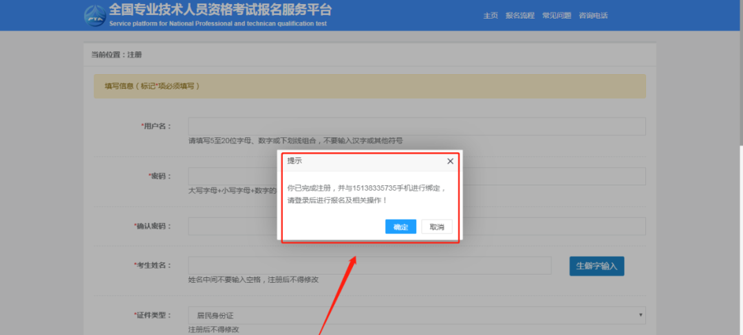 填写相关信息并确认无误后,点击【确认】后弹出信息确认弹窗,重新输入信息后,点击【确定】