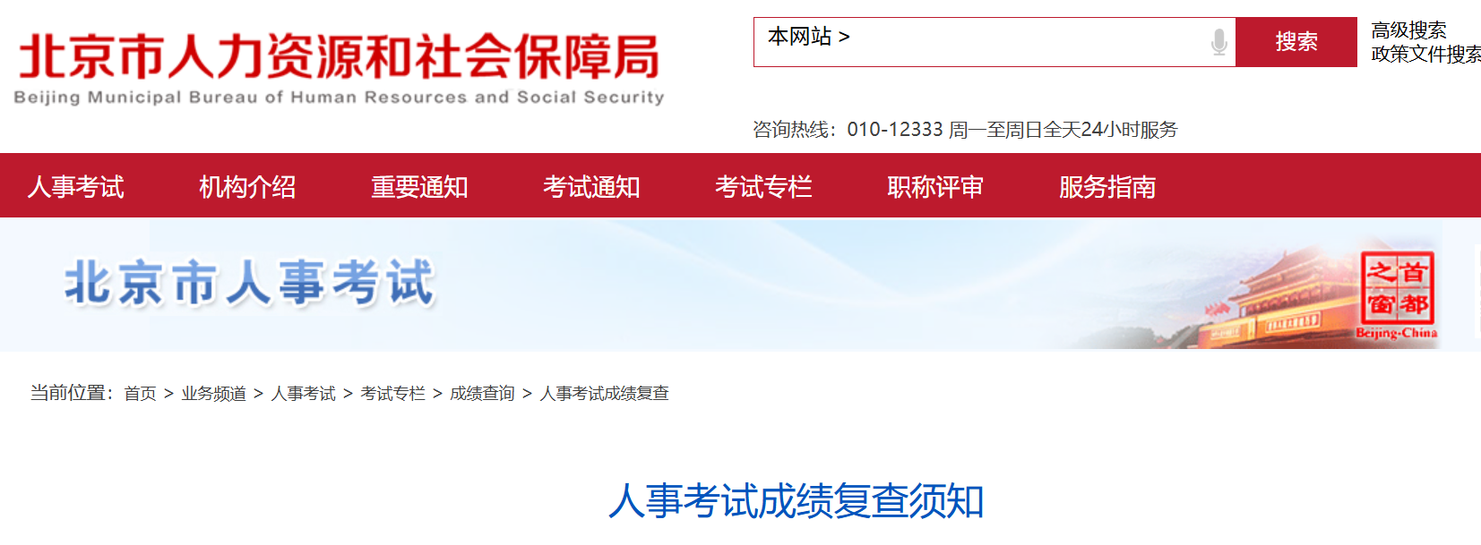 按照《人力资源和社会保障部办公厅关于印发<专业技术人员职业资格考试考务工作规程>的通知》(人社厅发[2021]18号)相关规定,应试人员对考试成绩有异议的,可在北京市人事考试服务频道“考试专栏”中的“成绩查询”栏目点击“人事考试成绩复查”按钮申请成绩复查;或关注“北京人事考评信息宣传”微信公众号“办事攻略—成绩查询—人事考试成绩复查”申请成绩复查。