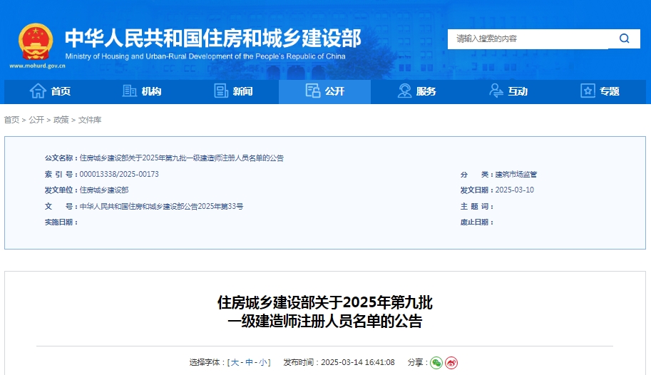 2025年第九批一级建造师注册人员名单公告已发布,本批次共30534人符合一级建造师注册条件,其中,初始注册共3515人,延续注册7771人,增项注册973人,重新注册18275人。
