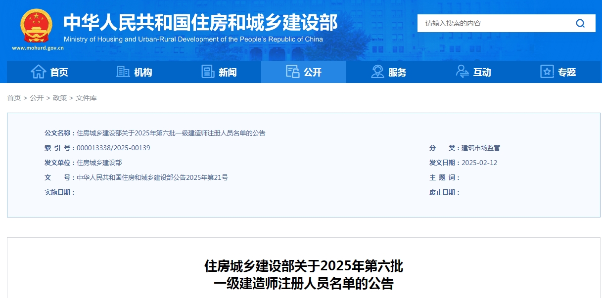 2025年第六批一级建造师注册人员名单公告已发布,本批次共13032人符合一级建造师注册条件,其中,初始注册共1572人,延续注册3904人,增项注册690人,重新注册6866人。