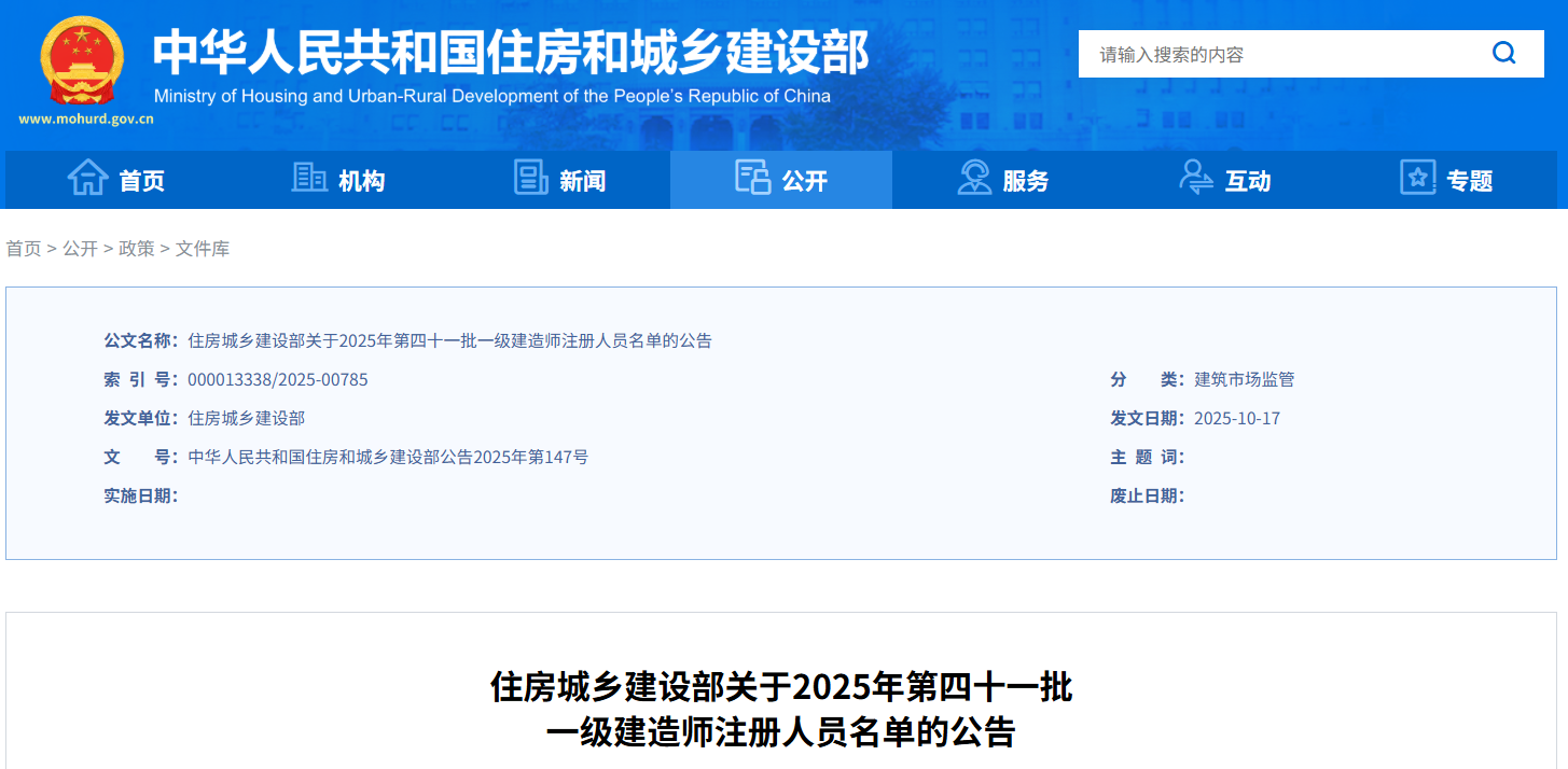 2025年第四十一批一级建造师注册人员名单公告已发布,本批次共13743人符合一级建造师注册条件,其中,初始注册共350人,延续注册1404人,增项注册129人,重新注册11860人,具体公告如下。