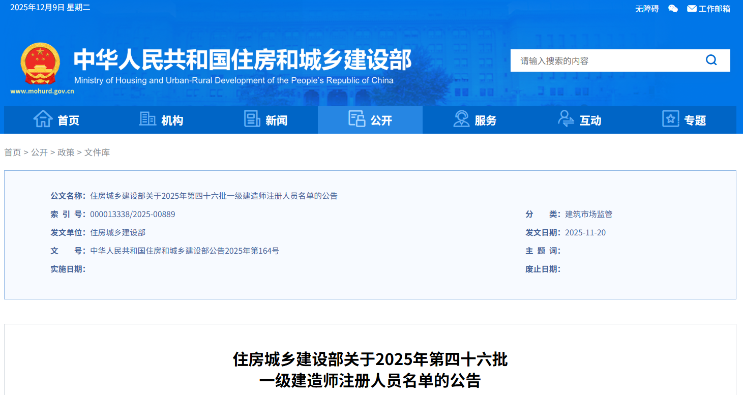 近日,住建部发布公告,第四十六批一级建造师注册人员名单中,13286人符合注册条件,准予注册。未获批准者可登录住建部政务服务门户查询不予注册原因,并自行打印《不予许可告知书》。