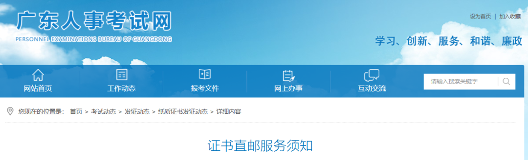 (一)全科成绩合格考生可登录广东人事考试网--“广东省专业技术人员职业资格考试业务办理系统”(以下简称“系统”),在首页选择证书邮寄模块,点击“证书直邮”栏目填写邮寄信息提交证书直邮申请。(提交申请前请核对邮寄信息确保准确无误,需填写常用的手机号码并确保畅通,用以接收投递验证码签收证书。如填写手机号码有误,将无法签收证书。)