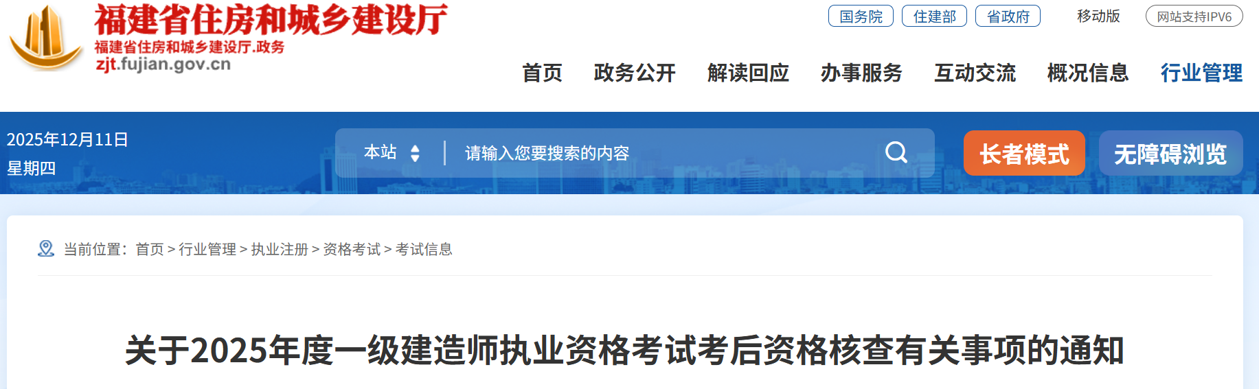 福建住建厅通知,12月15-17日对2025年度一建成绩合格人员开展考后资格核查。核查地点为各设区市建设局和人社局。考生须现场提交报名表、工作年限证明、学历证书及验证报告、一级建造师资格证书等材料。逾期未提交或不符合条件者成绩无效,提供虚假材料将按相关规定严肃处理。