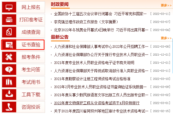 1、进入人事考试网,点击证书查询验证