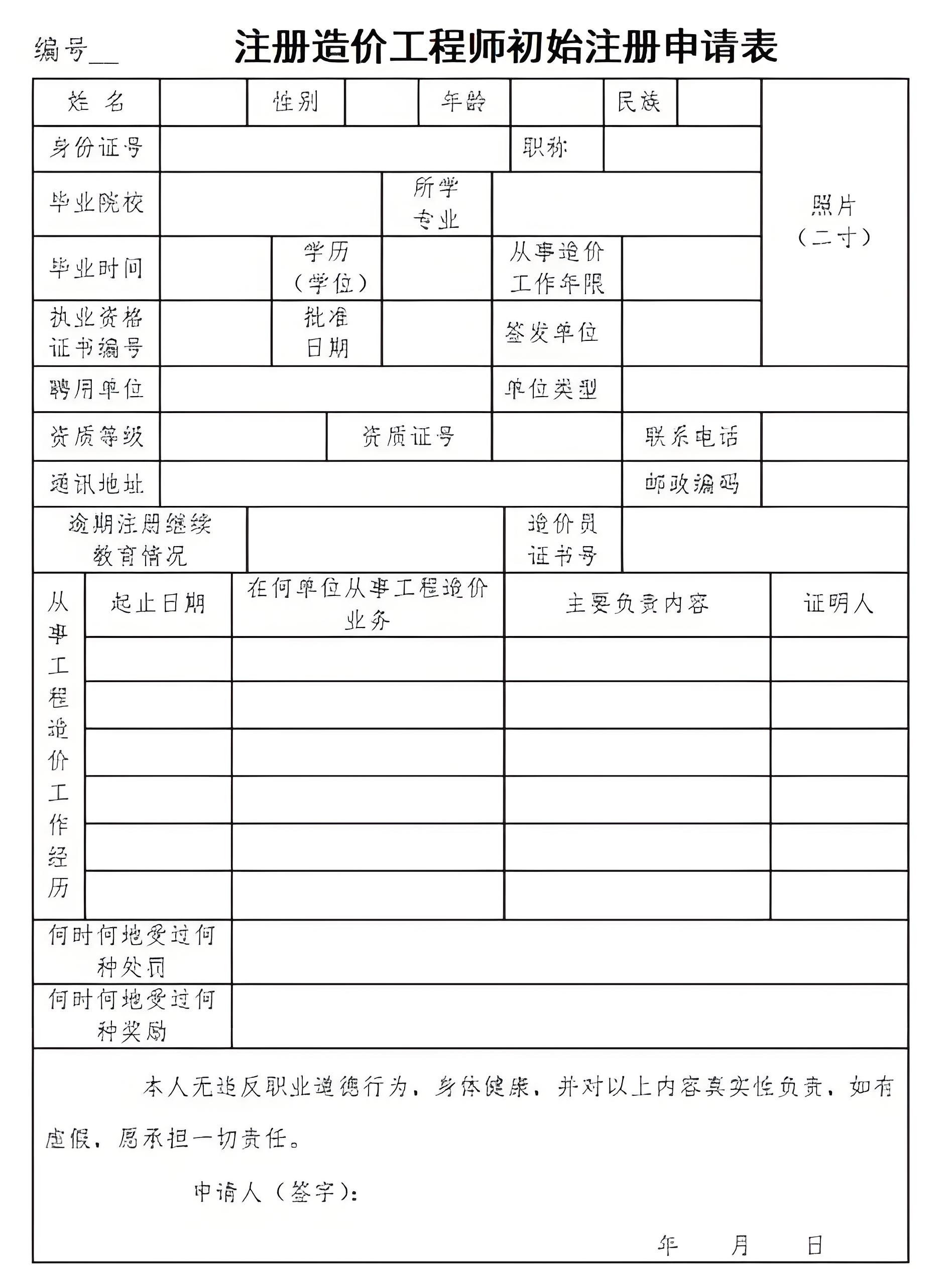 在线填写一级造价师初始注册申请表,包括个人信息、工作经历、学历证明、职业资格证书等信息。确保所有信息准确无误,并上传所需附件材料,如身份证、学历证明、劳动合同等。