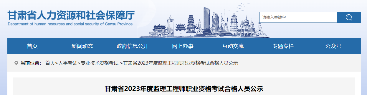 7月24日,甘肃省人力资源和社会保障厅发布了“甘肃省2023年度监理工程师职业资格考试合格人员公示”,公示期为2023年7月24日至2023年8月2日。