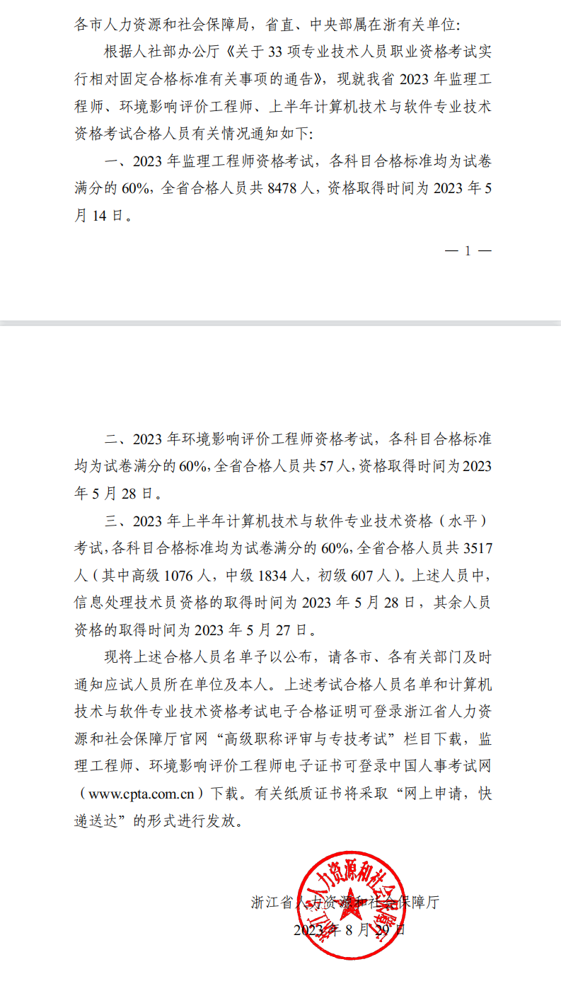 9月1日,浙江政务服务网发布了“关于公布2023年监理工程师专业技术资格考试合格人员名单的通知”,具体详情请见下文。