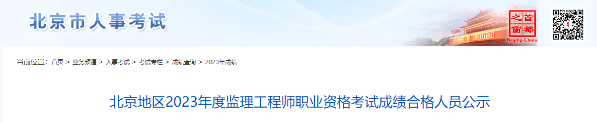 7月20日,北京市人力资源和社会保障局发布了“北京地区2023年度监理工程师职业资格考试成绩合格人员公示”,公示期为2023年7月20日至2023年8月3日。