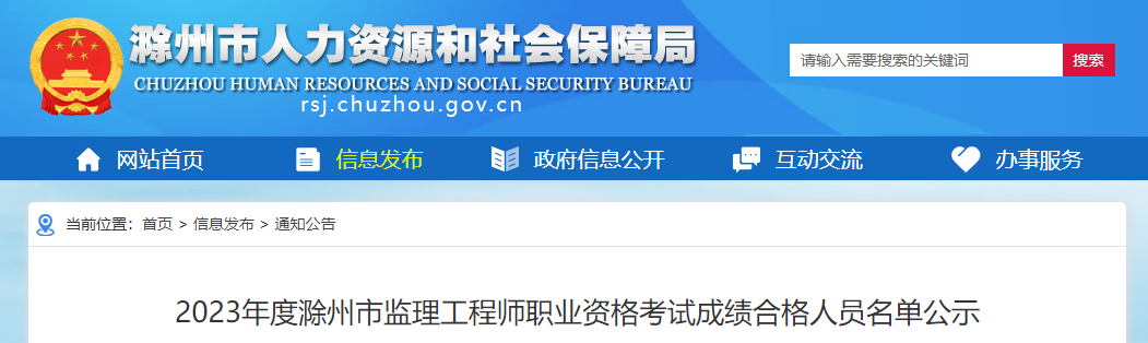 7月22日,滁州市人力资源和社会保障局发布了“2023年度滁州市监理工程师职业资格考试成绩合格人员名单公示”,公示时间至7月31日。