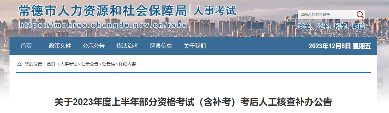 12月7日,常德市人力资源和社会保障局发布了“关于2023年度上半年部分资格考试(含补考)考后人工核查补办公告”,其中包括监理工程师。
