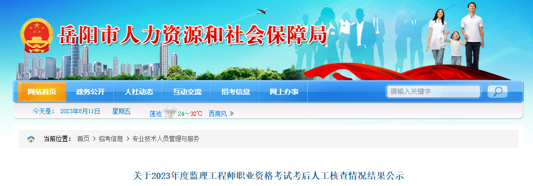 8月4日,岳阳市人力资源和社会保障局发布了“关于2023年度监理工程师职业资格考试考后人工核查情况结果公示”,现将核查结果进行公示,时间为5个工作日(2023年8月4日-8月10日)。