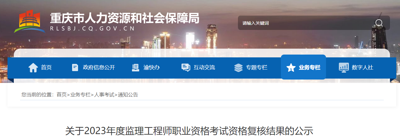 8月7日,重庆市人力资源和社会保障局发布了“关于2023年度监理工程师职业资格考试资格复核结果的公示”,公示时间2023年8月7日——8月18日。