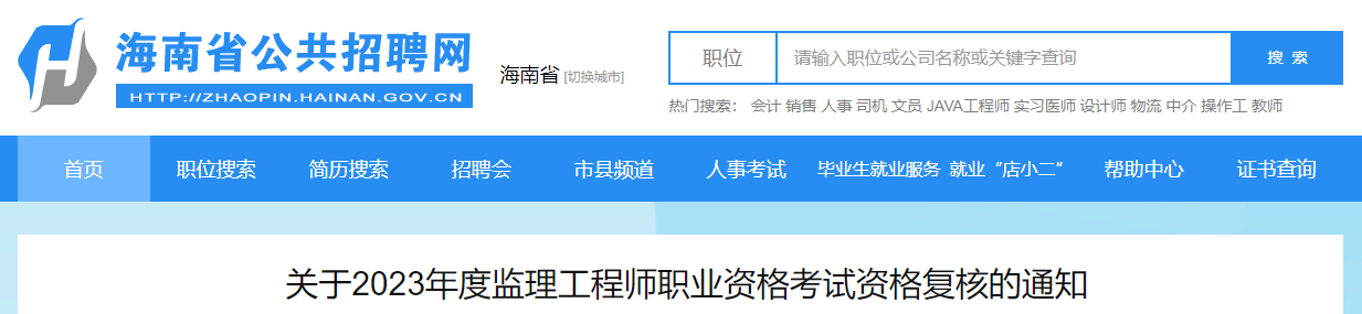 7月27日,海南省公共招聘网发布了“关于2023年度监理工程师职业资格考试资格复核的通知”,本次资格复核采取线上复核的方式进行。