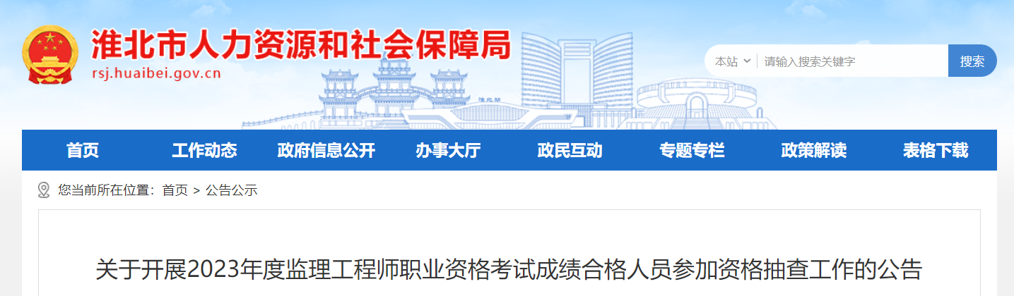 7月28日,淮北市人力资源和社会保障局发布了“关于开展2023年度监理工程师职业资格考试成绩合格人员参加资格抽查工作的公告”,按照省厅要求现抽查30名考生进行报考资格核查。