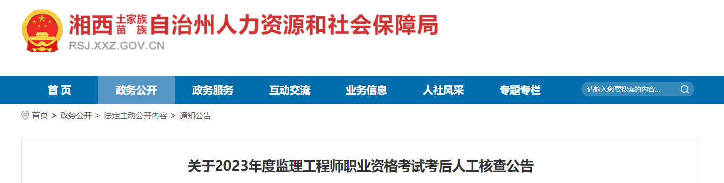 7月21日,湘西自治州人力资源和社会保障局发布了“关于2023年度监理工程师职业资格考试考后人工核查公告”,资格审查地点:湘西州人力资源和社会保障局专业技术人员管理科。