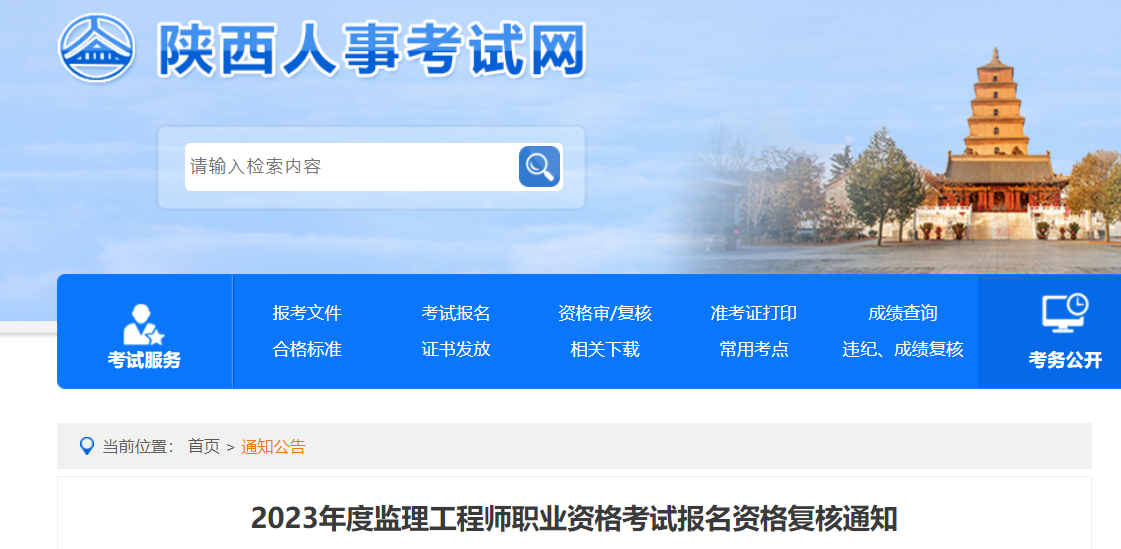 7月28日,陕西人事考试网发布了“2023年度监理工程师职业资格考试报名资格复核通知”,本次资格复核采用网络审核方式,复核人员可通过陕西人事考试网的资格审核系统提交资料并查询复核结果。