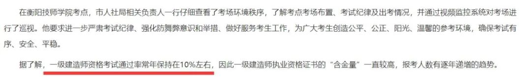 ✅掌上衡阳:据了解,一级建造师资格考试通过率常年保持在10%左右。
