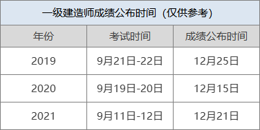 根据目前的公告来看,一级建造师成绩将于12月公布,历年一级建造师成绩发布时间也可以供考生们进行参考↓