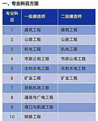 其中实务分为10个专业,有建筑、市政、机电、公路、水利、矿业、铁路、通信与广电、港口与航道、民航机场。