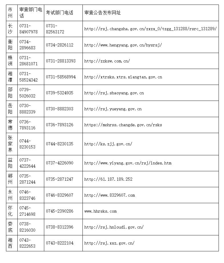 附件:1.各市州职业资格考试考后资格审查机构电话及及公告发布网址一览表;