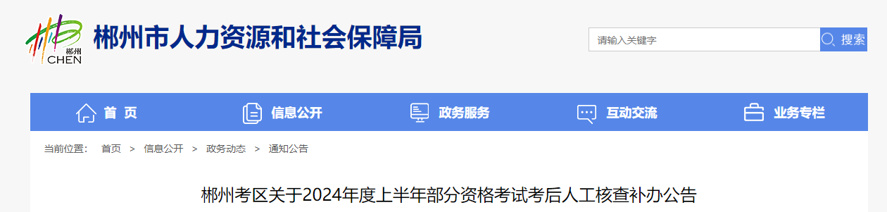 根据湖南省人社厅《关于2024年度上半年部分资格考试考后人工核查补办公告》精神,现将郴州考区人工核查工作有关安排公告如下,请考生按公告要求有序参加核查。