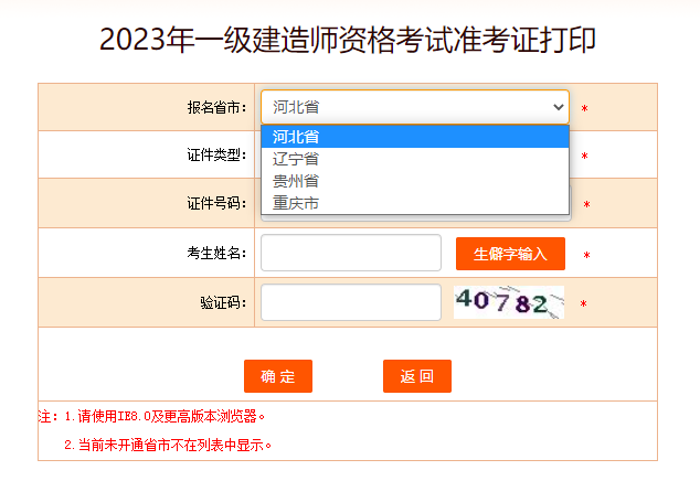 2023一建考试在即,准考证打印工作也即将开启!本站编辑发现,中国人事考试网已经开通了2023年度一级建造师考试准考证打印入口。其中河北、辽宁、贵州、重庆4地已经在“待打印”列表。