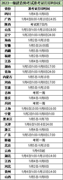 各省市准考证打印时间各地准考证打印时间不一致,详情如下图所示:
